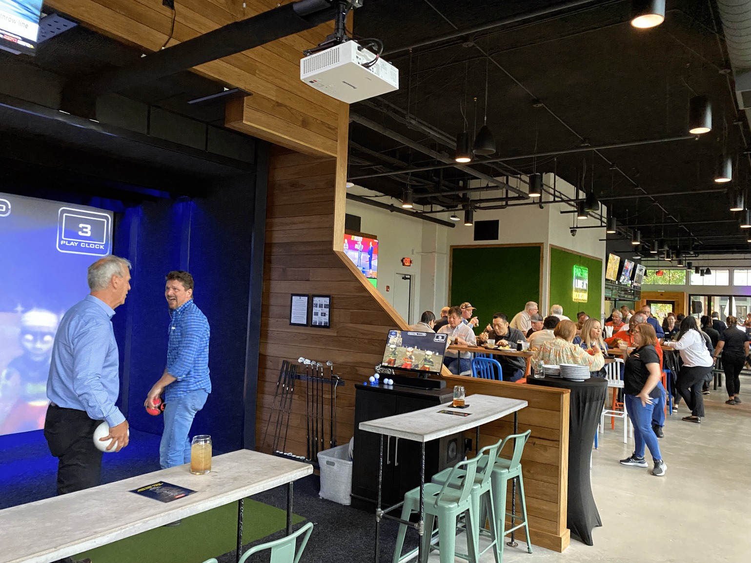 The facility includes 7 digital golf simulator areas.